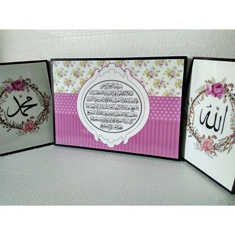 wall decor keren dengan desain Lafadz Allah Dan Muhammad, lengkap dengan ayat kursi