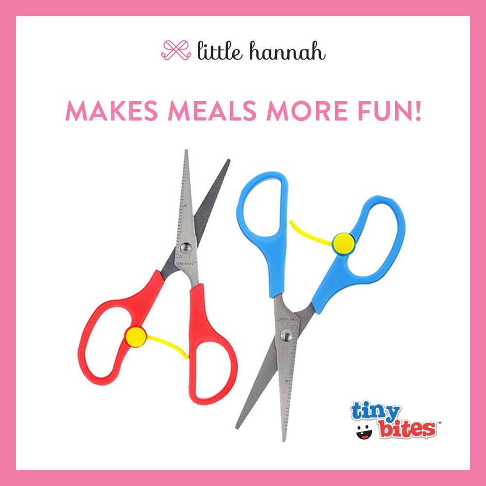 Tiny Bites Food Shears are award-winning portable kitchen scissors designed for parents to easily, efficiently and effortlessly cut their children's food into tiny bites, easy to hold strips and fun shapes.