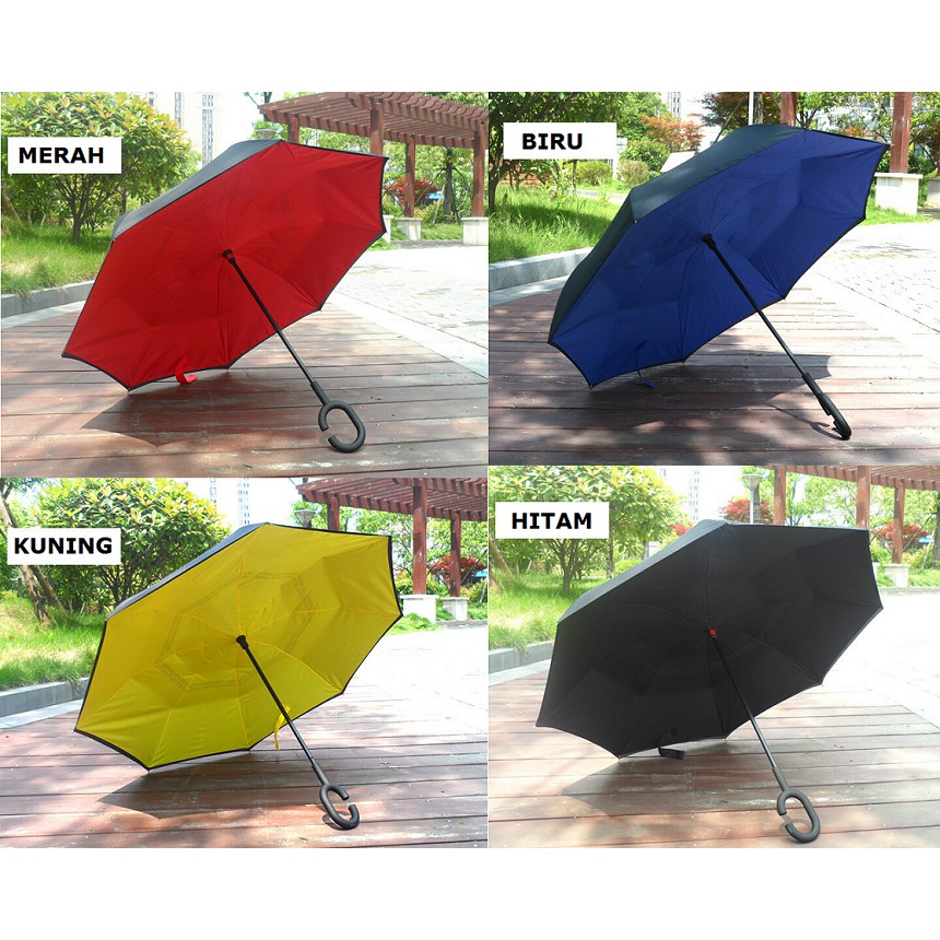 Kazbrella atau payung dengan model bukaan terbalik ini akan memudahkan anda setelah pemakaian karena air hujan pada payung tidak akan mengotori ruangan atau pun mobil anda.