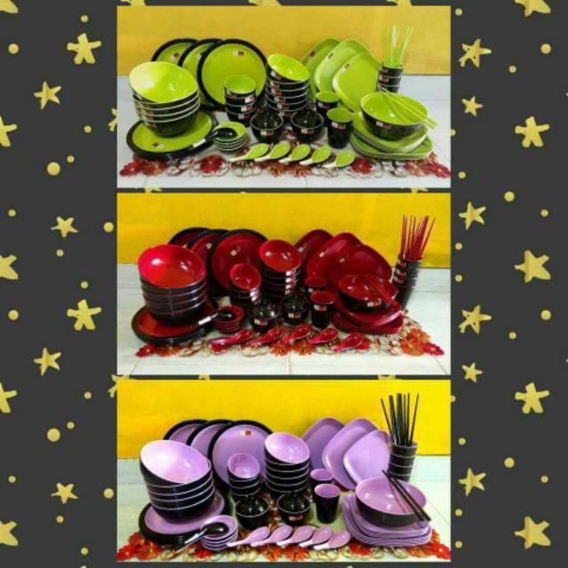 Perlengkapan makan Melamin Golden Dragon ori (Paket Lengkap/komplit) :
