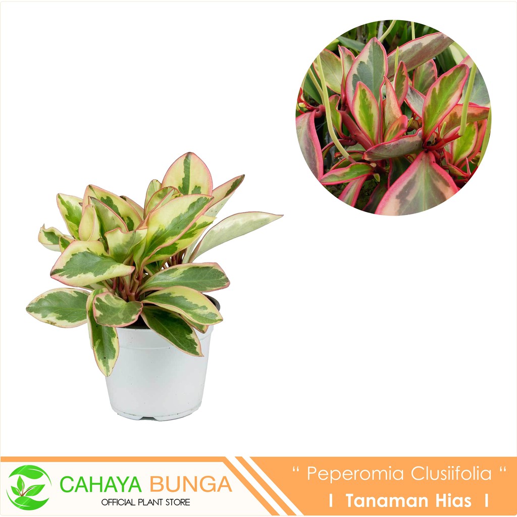 Tanaman hias daun yang cantik dengan kombinasi warna yang unik, peperomia clusiifolia disebut juga dengan tricolor ataupun rainbow, merupakan spesies yang berasal dari hindia barat dan venezuela. Biasa digunakan sebagai tanaman indoor untuk dekorasi ruang tamu ataupun dapur.
